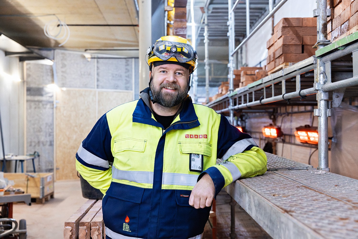 – Lange perioder med minusgrader har gitt oss utfordringer. Derfor har det vært helt nødvendig med punktvarme for å varme opp teglsteinen som skal dekke fasaden på tilbygget. Derfor leide vi elektriske strålevarmere fra Cramo, forteller Rolf Inge Nevermo, arbeidsleder i Ruta Entreprenør.